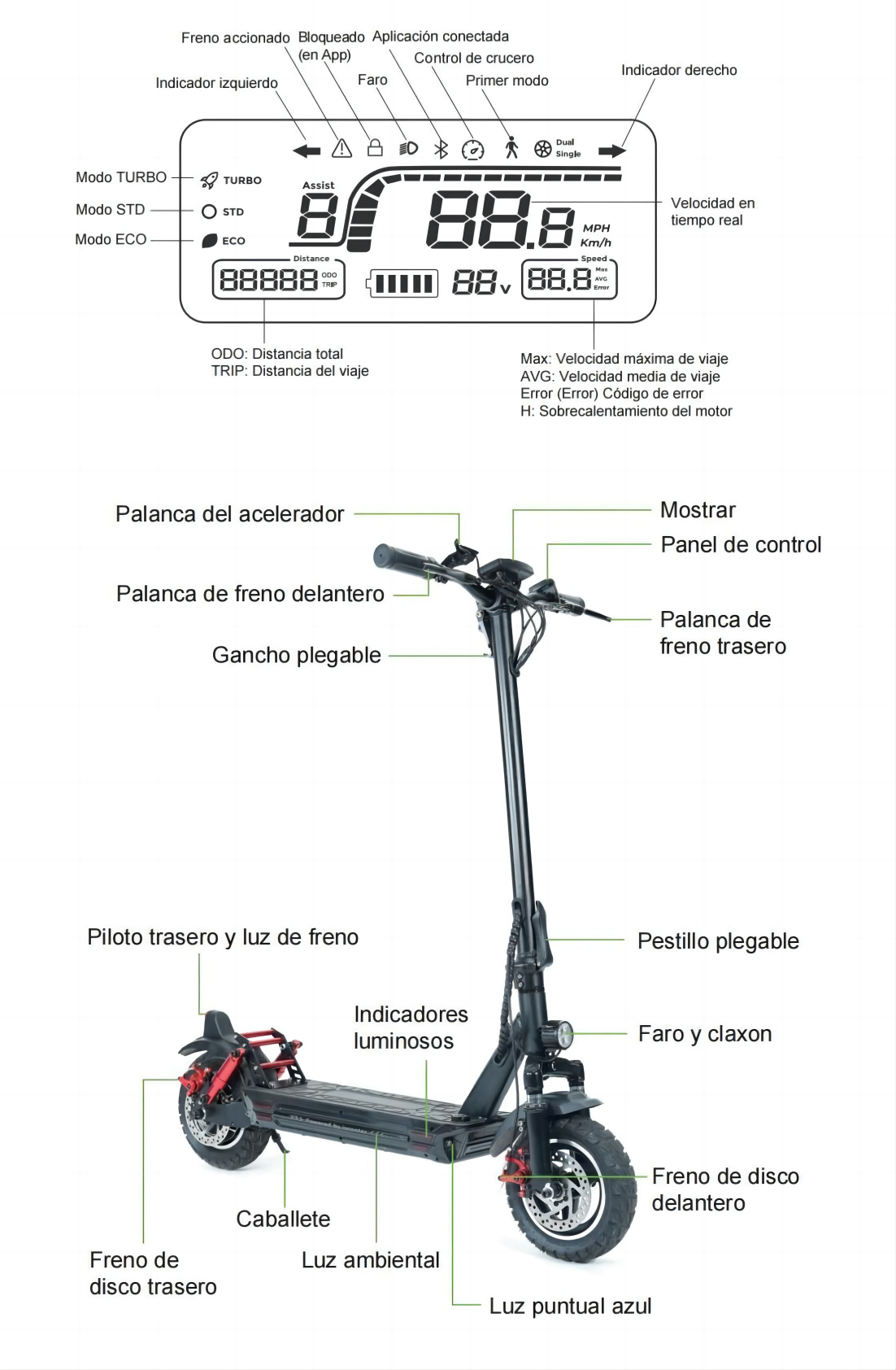 Las luces del scooter garantizan una visibilidad clara en todas las condiciones.