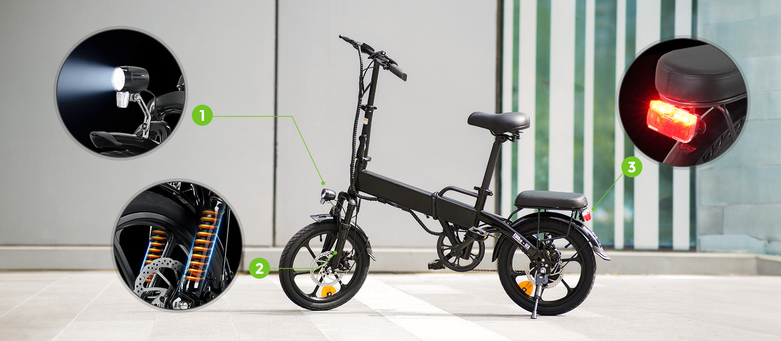 La función de plegado del U3 te permite moverte libremente por todos los rincones de la ciudad. Su naturaleza liviana y su diseño de asa fácil de transportar significan que puede ir a cualquier lugar con facilidad. A ello se suma una cómoda suspensión de horquilla delantera y un cojín de asiento, que garantizan un confort de conducción incomparable incluso en los viajes más largos.